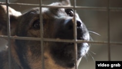 Еще один обитатель приюта – Аяша, собака-инвалид без задних ног. Он ездит на самодельной тележке.