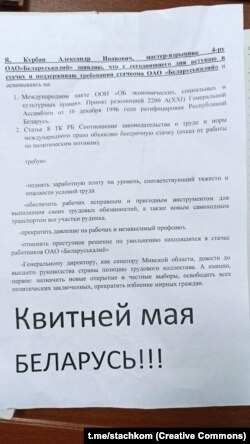 - Генеральному директору, как сенатору Минской области, довести до высшего руководства страны позицию трудового коллектива, а именно: назначить новые открытые и честные выборы, освободить всех политзаключенных, прекратить избиение мирных граждан.