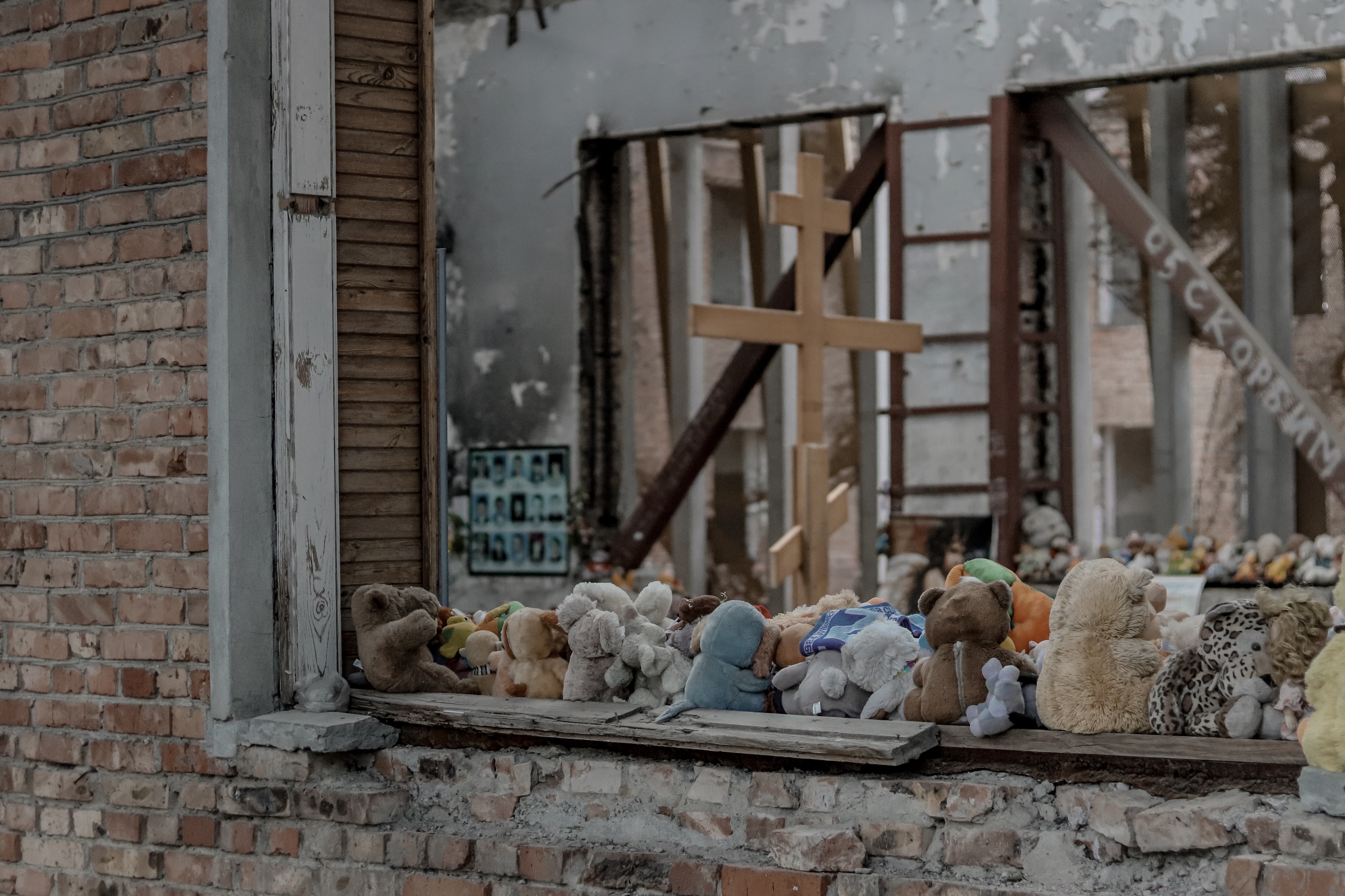 Иконы и портреты погибших в бывшей школе №1