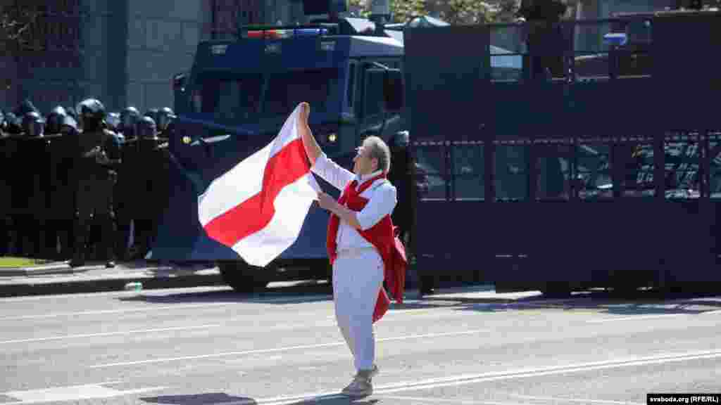 У Дворца Независимости к протестующим вышел помощник действующего президента Беларуси Николай Латышонок, но диалога не получилось.