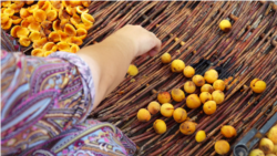 Фуникулер Ибрагима – деревянная тележка, которая перемещается над бурной рекой по стальному тросу. За сезон Ибрагим переправляет несколько тонн абрикосов. Продает оптовым покупателям: "В этом году грех жаловаться, много было у нас хороших абрикосов, покупатели были, и цена тоже нормальная. Вообще грех жаловаться на это".