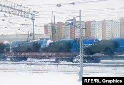 В переписке с журналистом Радио Свобода молодой человек уточнил, что служит в 38-й отдельной мотострелковой бригаде в поселке Екатеринославка Амурской области, откуда, как зафиксировали в CIT, за последний месяц было отправлено несколько попавших на видео эшелонов. В их составе можно отметить реактивные системы залпового огня БМ-21 "Град", также применявшиеся в российско-украинской войне в 2014-2015 годах.